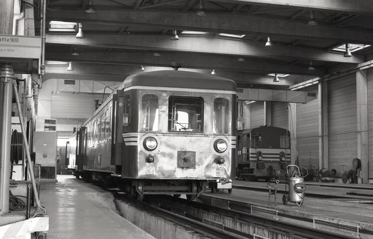 Deze motorwagen behoort tot de reeks 49. Hij staat opgesteld in een werkplaats, boven een schouwput. Deze schouwput wordt door het personeel gebruikt om de onderzijde van locomotieven, motorwagens of rijtuigen te controleren. Op de achtergrond zien we een rangeerlocomotief van de reeks 84. Schenking van Myriam Hendrickx.