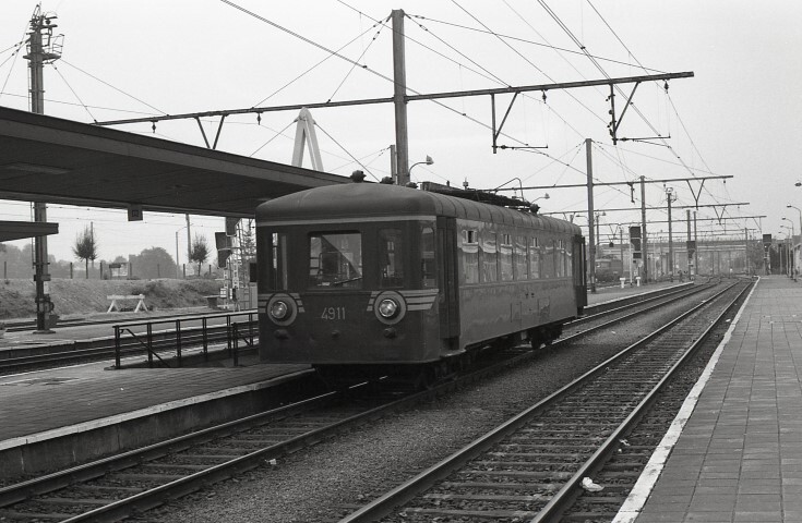 Ce groupe de photos comporte 18 négatifs. L'autorail 4911 (série 49) stationne à quai en gare de Welkenraedt. Les quais sont partiellement recouverts d'auvents. Sur différentes photos, nous voyons à droite une voiture I 1 sur une autre voie. Sur d'autres photos, nous remarquons la plaque signalétique de la gare et un chariot à bagages sous l'auvent. Don de Myriam Hendrickx.