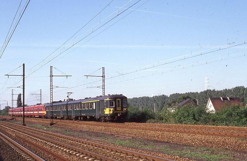 BeschrijvingDeze fotogroep bevat twee dia's van dezelfde trein, die werd ingezet voor de Gordel van Brussel. Vooraan rijdt motorstel 691 (reeks 06, schijf 1973).