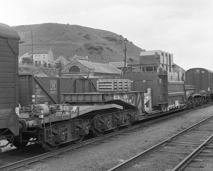 Deze fotogroep bestaat uit vier negatieven. Ze tonen een platte wagen op tien assen voor het vervoer van uitzonderlijke goederen tot 90 ton. Het transport bestaat vermoedelijk uit een zware transformator. De wagen bevindt zich tussen een gesloten goederenwagen en een pakwagen met uitkijkpost. Op de achtergrond zien we een afvalberg van een steenkoolmijn.
