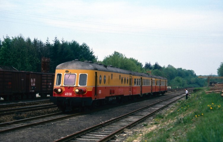 BeschrijvingDeze fotogroep bevat twee dia's. Motorwagen 4006 komt aan in het station en rijdt ter hoogte van de sporenbundel. Op de achtergrond staan enkele goederenwagens.