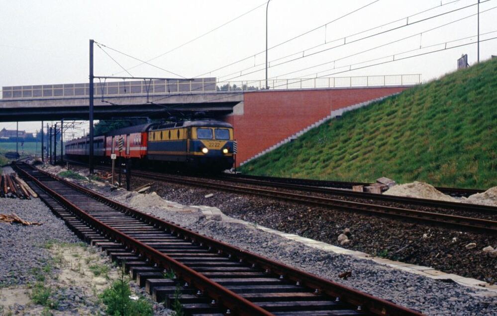 TitelElektrische locomotief 2222 sleept een reizigerstrein in Diegem