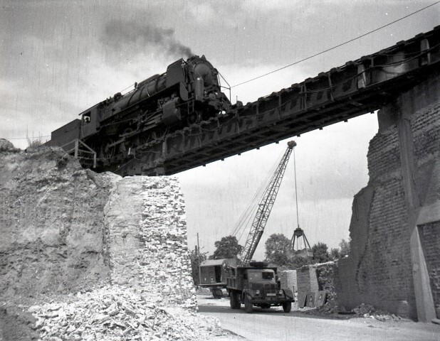 De fotogroep bevat zeven negatieven. Ze tonen de bouwwerken aan de brug van Ottignies. Hoewel de werken volop aan de gang zijn passeert over de brug een trein gesleept door een stoomlocomotief van het type 29 (1D Consolidation).