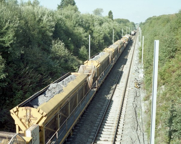 Deze fotogroep bestaat uit zeven negatieven. Ze tonen de werftrein voor het gieten van de betonnen funderingen waarin de bovenleidingspalen geplaatst worden. Op foto's B en F zien we een nieuwe wegbrug waarvan het wegdek aangepast is aan het ruimteprofiel voor elektrische tractie.