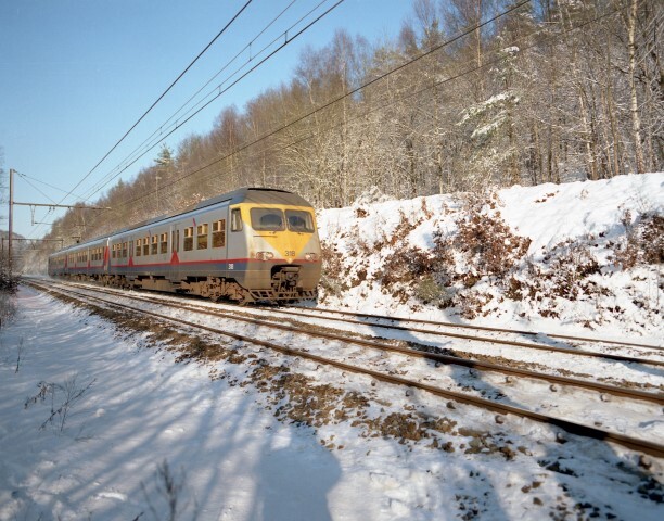 De fotogroep bevat vijf negatieven. Ze tonen opnames in de sneeuw van verschillende drieledige motorstellen reeks 03 (Break), rijdend op spoorlijn 162 in de omgeving van Hatrival. De opnames werden gemaakt in 1995. Op dat ogenblik waren deze motorstellen geschilderd in Memlingkleurstelling. Op de eerste drie foto's zien we motorstellen 318, 313 en 317, de vierde foto toont een detail van een motorstel Break en de vijfde een motorstel van de Luxemburgse spoorwegen (CFL).