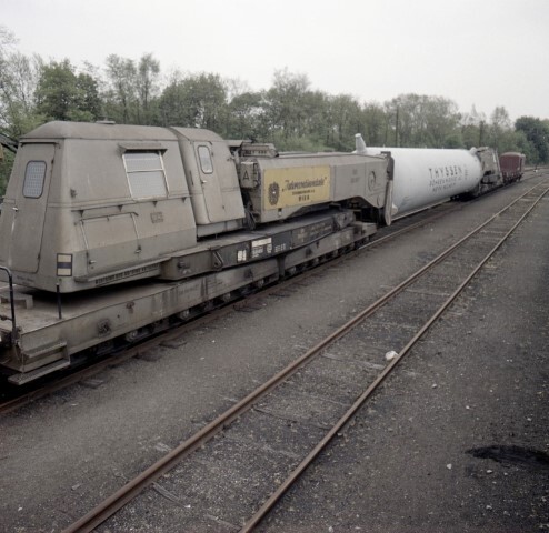 Deze fotogroep bestaat uit zeven negatieven. Ze tonen twee speciale wagens waartussen zich een grote witte cilinder bevindt met het opschrift 'Thyssen Röhrenwerke AG Werk Mülheim'. Elke wagen rust op tien assen. Op een gele plaat zien we het wapenschild van Oostenrijk en de naam van de transportfirma 'Intercontinentale Österreichische AG Wien'. De speciale wagens worden ingesloten door een Duitse en Belgische pakwagen.