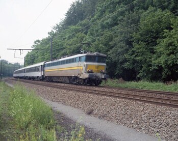 BeschrijvingLocomotief 1802 sleept een internationale trein met Corail-rijtuigen (die naam is een samentrekking van 'comfort' en 'rail'). De trein rijdt op spoorlijn 96 van Brussel naar Parijs.