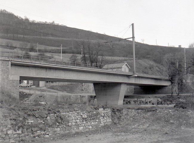 De fotogroep bevat vier negatieven. Ze tonen een betonnen spoorbrug over de Vesder in Vaux-sous-Chèvremont, een deelgemeente van Chaudfontaine. Op de foto's B en C rijden treinen over de brug: een elektrisch motorstel uit de reeks 1954 of 1955 en een elektrische locomotief uit de reeks 22 (type 122) tijdens een losse rit.