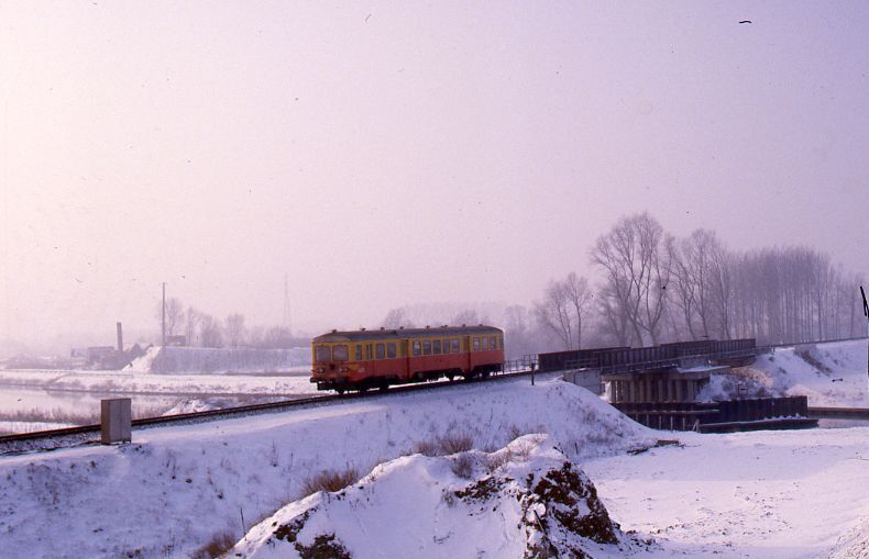 BeschrijvingDe fotogroep bevat drie dia's. Motorwagen 4403 rijdt door de besneeuwde velden in Ename.