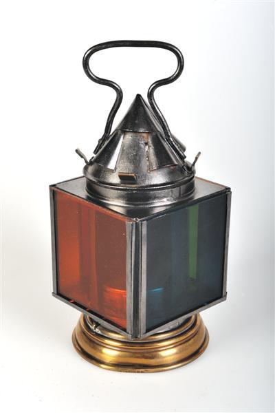 In geval van nood of bij een defect sein kon men met een handsein een waarschuwing geven aan de treinbestuurders. 's Nachts deed men dit door de trein tegemoet te lopen, zwaaiend met een seinlantaarn. Deze lantaarn heeft vier glazen zijden in verschillende kleuren: rood (om de trein onmiddellijk te laten stoppen), groen (om doorrijden toe te laten tegen de normale snelheid) en tweemaal geel (om doorrijden toe te laten, maar wel tegen een verminderde snelheid). De lantaarn staat op een ronde voet en heeft een handvat bovenaan. Schenking van mevr. Cappuyns-Lowet.