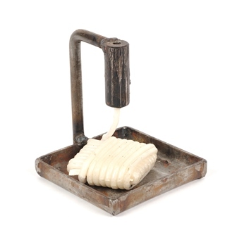 In de houder zit een wassen koord die als een kaars werd aangestoken. Daarboven hield men een staaf zegellak om deze te laten smelten. De smeltende lak liet men dan op een brief, pakket of geldzak druppelen totdat er voldoende lak aanwezig was om daar een zegelstempel in te drukken. De lak hardde daarna snel volledig uit. Op deze manier werden brieven, pakketten en geldzakken ter beveiliging verzegeld.