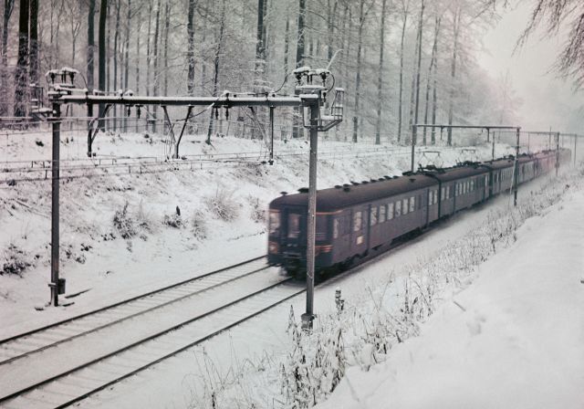 De fotogroep bevat acht negatieven. Ze tonen treinen bestaande uit één of meerdere gekoppelde motorstellen reeks 00, schijf 1954, een motorstel reeks 00, schijf 1956 'Budd' en een gemengde goederentrein gesleept door twee elektrische locomotieven type 123. De opnames werden gemaakt in een sneeuwlandschap.