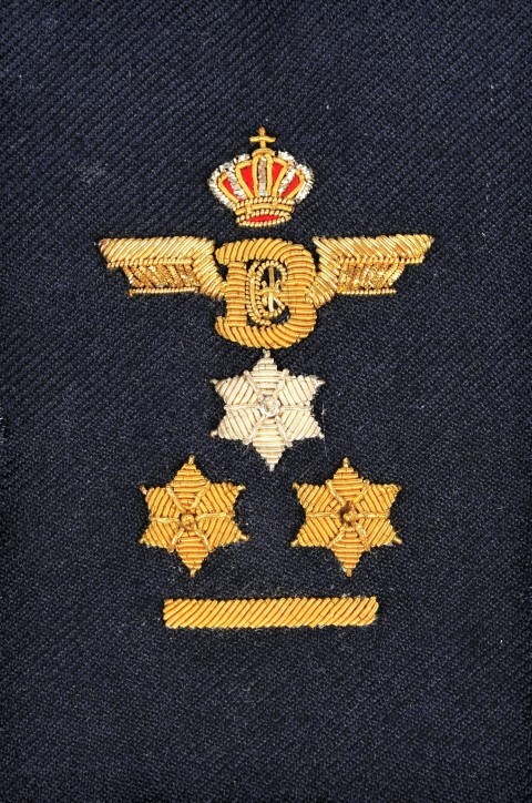 BeschrijvingInsigne met goudkleurig gevleugeld en gekroond wiel met binnenin het NMBS-logo. Daaronder bevinden zich één zilveren en twee goudkleurige sterren en een goudkleurige streep.