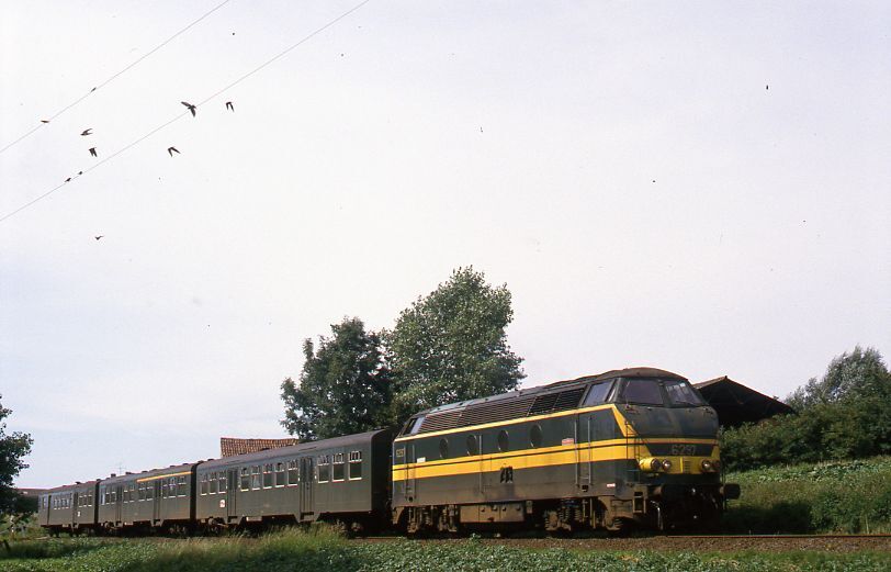 TitelDiesellocomotief 6297 met M 2-rijtuigen in Zingem