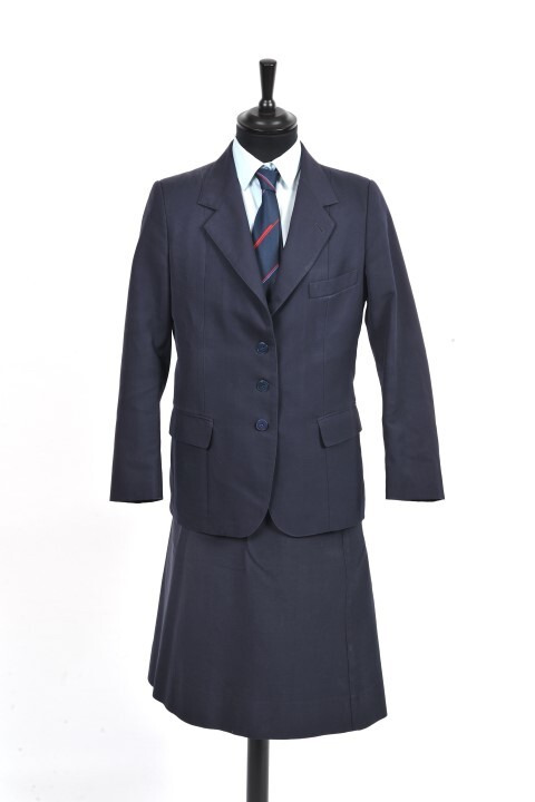 BeschrijvingHet uniform bestaat uit een donkerblauwe plooirok, een lichtblauwe blouse met korte mouwen, een donkerblauw jasje met vooraan drie kunststof knopen en een donkerblauwe das met rode en lichtblauwe lijnen en het logo van de NMBS.