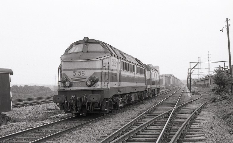 Deze locomotief behoort tot de reeks 51. Ze wordt op sleep genomen door een diesellocomotief van de reeks 59. Links vóór de locomotieven zien we de nieuwe spoorbrug over het Albertkanaal. Uiterst links liggen de sporen die over de nieuwe brug zullen voeren al klaar. Schenking van Myriam Hendrickx.