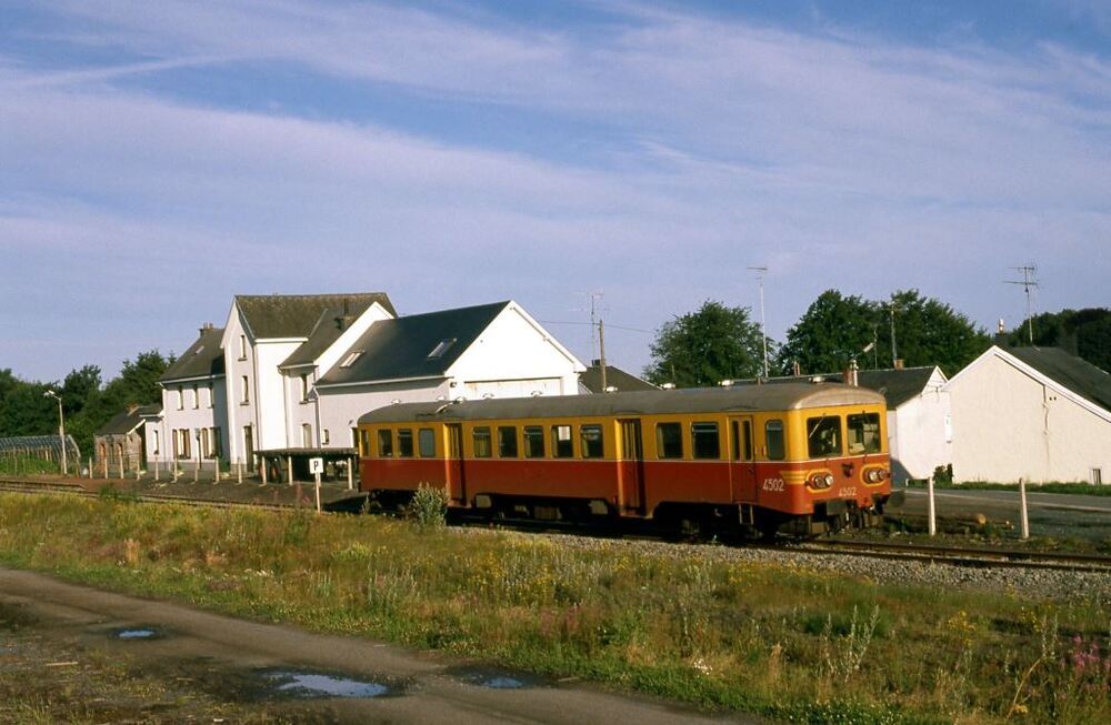 BeschrijvingMotorwagen 4502 rijdt voorbij de stopplaats Sibret. Het vroegere stationsgebouw heeft een andere bestemming gekregen. Deze stopplaats ligt langs spoorlijn 163 (Libramont - Sankt Vith).