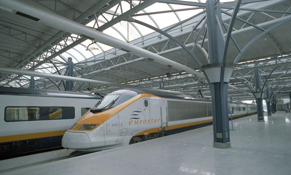 De groep bevat 29 negatieven. Eurostar 3020 van de European Passenger Service (EPS) komt aan in de terminal in Brussel-Zuid. De slanke vormgeving is een gevolg van het Britse vrije ruimteprofiel dat minder ruim is dan het Europese. Het treinstel is lichtgrijs geschilderd met gele en donkerblauwe accenten. Op de zijwand van de motorwagen staan het logo en het opschrift ‘eurostar’. Op het andere spoor staat ook een Eurostar. Reizigers stappen in. De perrons en sporen hebben een overkapping uit plexiglas en aluminium, die door een metalen gebinte ondersteund wordt.