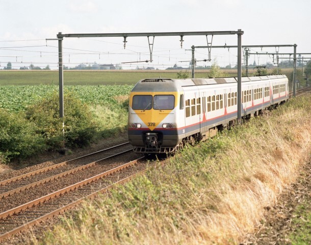 Motorstel 378 (reeks 03) rijdt op spoorlijn 36 tussen Brussel en Luik. Het motorstel is met een tussenrijtuig uitgerust. De kast is grijs geschilderd met rode en donkerblauwe accenten. De stuurpost is van een gele zichtbaarheidsdriehoek voorzien.