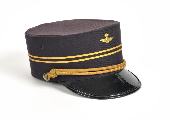 Blauwe kepie met een zwarte klep in kunststof. Boven de klep is een dubbele gele koord, bevestigd met twee ronde metalen knopen. Er lopen twee gouden biezen, op 3,5 en 4,5 cm van de rand. Vooraan is een goudkleurig spoorweginsigne bevestigd: een gevleugeld en gekroond wiel met binnenin het logo van de NMBS.