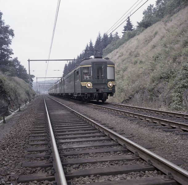 BeschrijvingDeze fotogroep bestaat uit drie negatieven. Ze tonen motorstel 070 van de reeks 00, schijf 1954. Op foto's B en C zien we ook een motorstel reeks 00, schijf 1956 'Budd', gekoppeld achter motorstel 070.