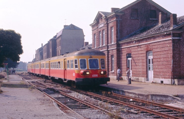 BeschrijvingMotorwagen 4006 staat aan het perron tijdens een speciale toeristische rit. Rechts zien we het stationsgebouw. Enkele reizigers wachten op het perron.