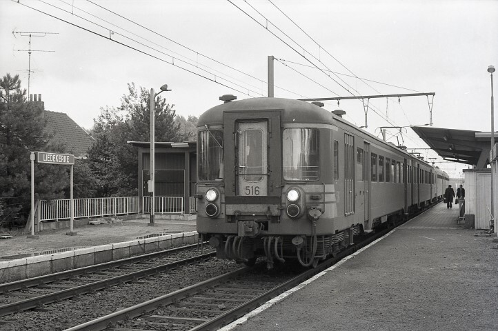 Dit motorstel behoort tot de reeks 00, schijf 1955. Het vormt samen met motorstel 640 een reizigerstrein. De trein bevindt zich aan het perron van station Liedekerke op spoorlijn 50 richting Denderleeuw. Beide perrons zijn van een luifel voorzien. Op het perron links staat een stationsnaambord. Het gebouw links, wat verscholen achter de bomen, is het stationsgebouw. Schenking van Myriam Hendrickx.