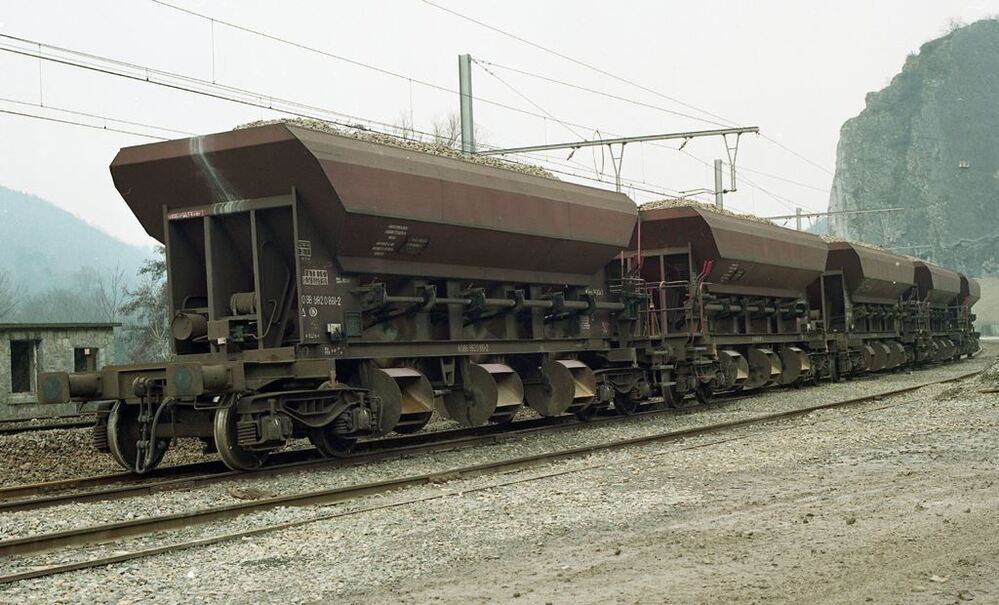 TitelGoederenwagens met steengroeveproducten in Lustin
