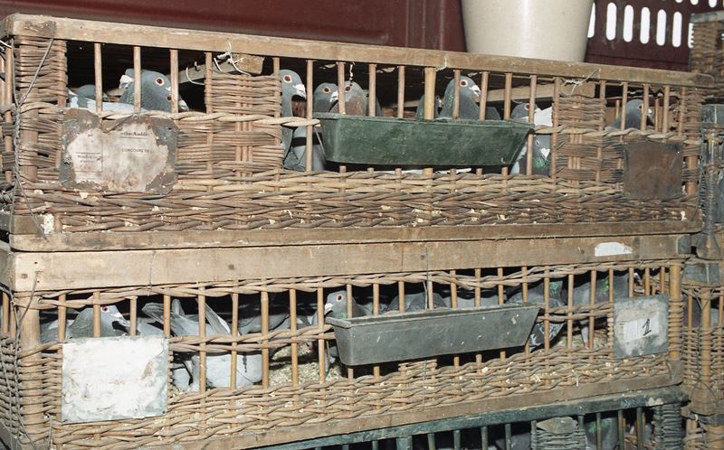 BeschrijvingDe groep bevat negen negatieven. Ze tonen een goederenwagen waarin duivenkorven worden geladen, onder toezicht van begeleiders.