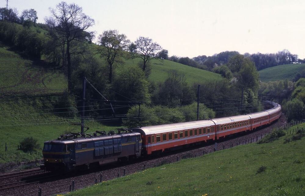 TitreLocomotive électrique 1603 remorquant un train international à Welkenraedt