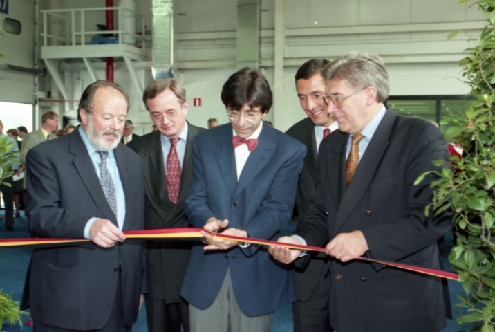 De groep bevat 39 negatieven. Elio Di Rupo knipt als federaal minister van Economie en Telecommunicatie het lint door in het bijzijn van spoorwegbaas Etienne Schouppe. Genodigden verkennen het nieuwe sorteercentrum.