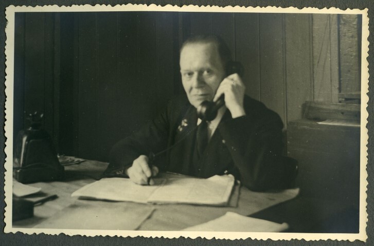 BeschrijvingHet portret werd genomen in het kantoor van de adjunct-stationschef. Hij draagt een uniform en spreekt in een telefoon.