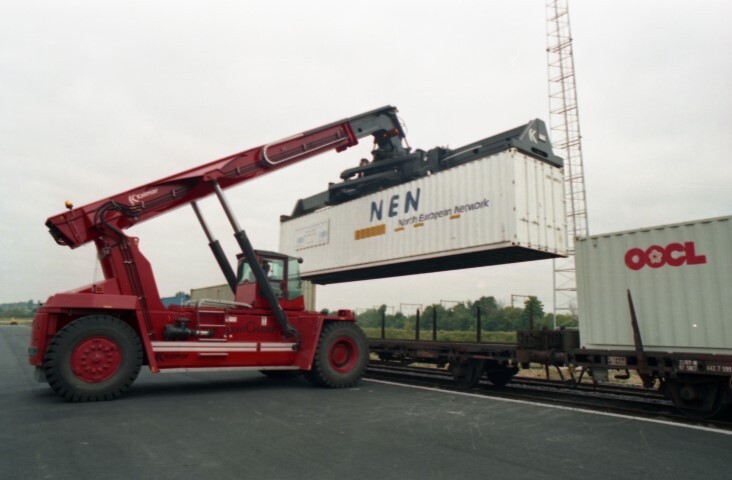 De groep bevat 44 negatieven. enkele tonen de toespraken die gegeven werden ter gelegenheid van de opening van de Dry Port. Op andere zien we hoe heftrucks containers op vrachtwagens en goederenwagens laden.
