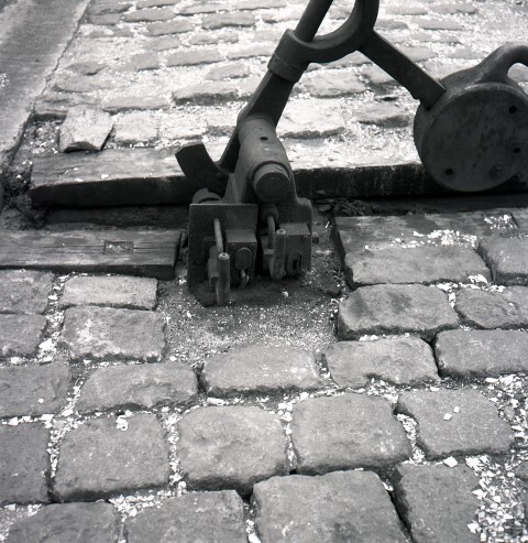 BeschrijvingDeze fotogroep bestaat uit drie negatieven. De foto's A en C tonen een handel met tegengewicht voor de manuele bediening van een wissel. Op foto B zien we twee schakelaars voor de bediening van de seinen U en F.