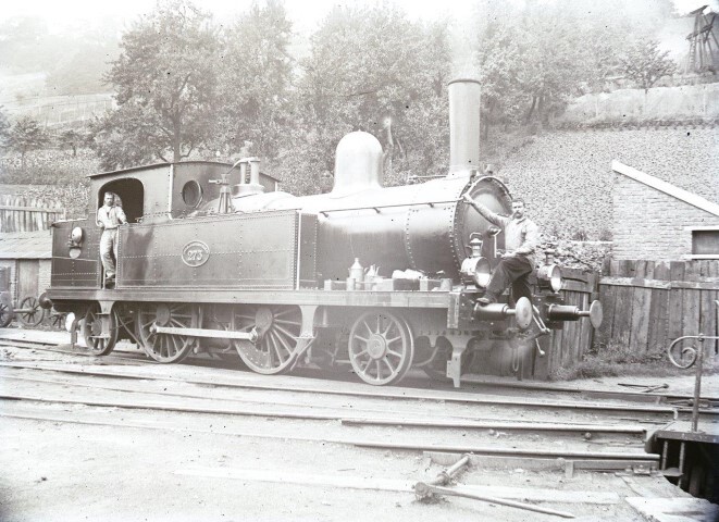 De foto toont tenderlocomotief 273 (1B1t) van de Nederlandse Staatsspoorwegen (NS). Van deze locomotief werden acht exemplaren gebouwd door Sharp Stewart. De locomotief staat onder stoom en bevindt zich vlak voor een draaischijf (rechts op de foto). Twee personeelsleden poseren voor de fotograaf. Op de kolenbak achter het machinistenhuis zien we een alarmbel die het voor de hoofdwachter en reizigers mogelijk maakte om in geval van nood de machinist te waarschuwen.
