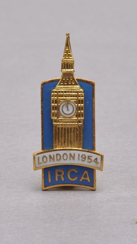 BeschrijvingPin met afbeelding van Big Ben. Daaronder het opschrift: 'London 1954 IRCA'.