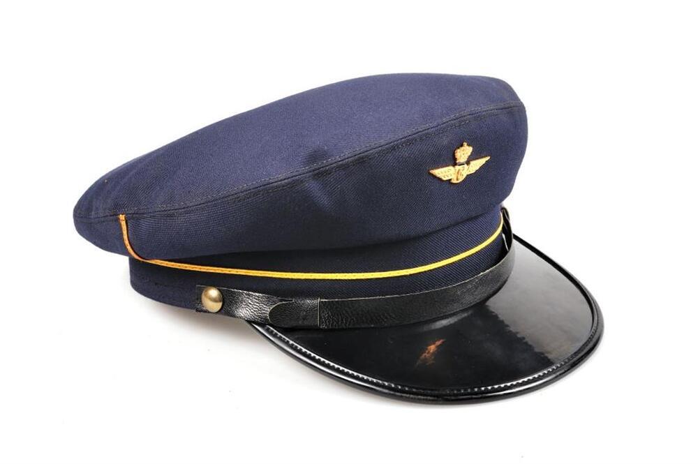 BeschrijvingDonkerblauwe dienstpet met een zwarte klep in kunststof. De stormband is van leer en vastgemaakt met ronde metalen knopen. Er loopt een gele bies op 2 centimeter boven de rand. Aan beide zijden loopt een enkele bruine verticale streep. Vooraan is een spoorweginsigne bevestigd. De pet is versterkt met een leren band en de voering is lichtbruin. Ze werd in verschillende maten bewaard.