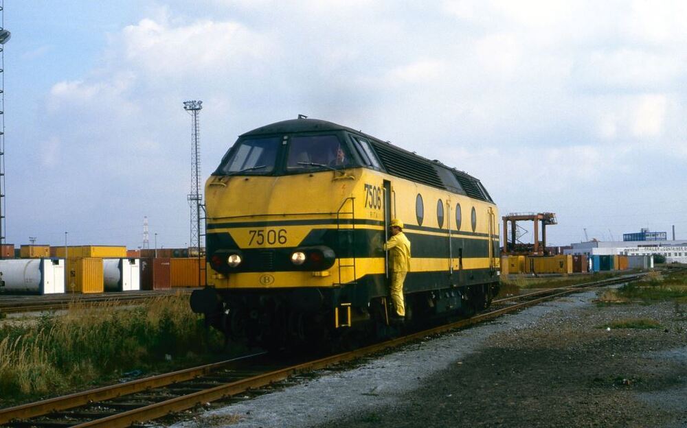 Deze fotogroep bevat vier dia's. Diesellocomotief 7506 is gefotografeerd op verschillende plaatsen tijdens een losse rit in de sporenbundel 'Angola' in de Antwerpse haven. Op één dia zien we een rangeerder en de treinbestuurder. Schenking van Myriam Hendrickx.