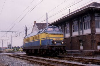 BeschrijvingDiesellocomotief 6005 (reeks 60 proto) staat voor een oud seinhuis van het type Saxby.