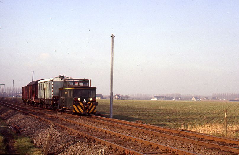 BeschrijvingWe zien een werktrein bestaande uit een draisine en enkele goederenwagens. De elektrificatiewerken aan de lijn waren op dat moment volop bezig.