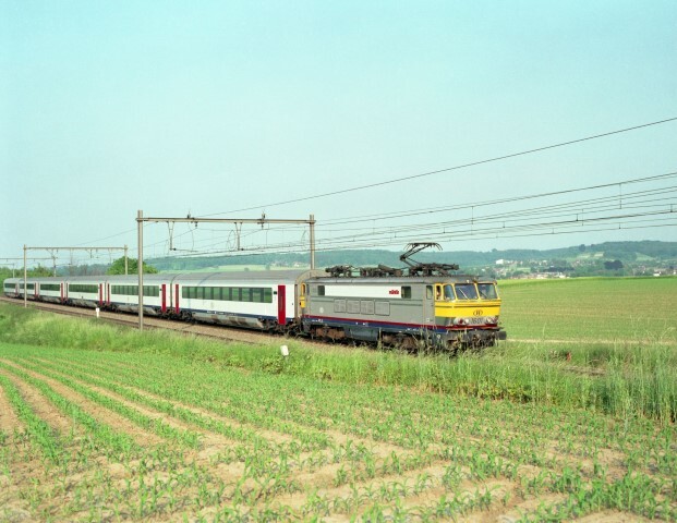BeschrijvingDeze fotogroep bestaat uit twee negatieven. Ze tonen locomotief 1601 in haar lichtgrijze Märklin-livrei met gele zichtbaarheidsstrepen. Ze sleept een reizigerstrein samengesteld uit I 11-rijtuigen.