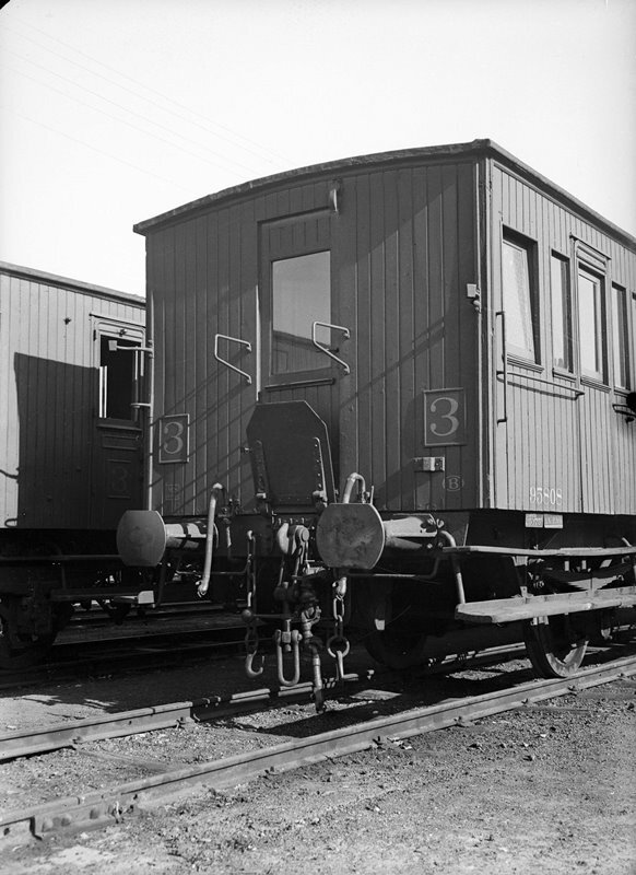 BeschrijvingOp de foto zien we het uiteinde van een GCI-rijtuig derde klas. Achteraan is een deur en loopplank waardoor de hoofdwachter zich van het ene naar het andere rijtuig kon verplaatsen.