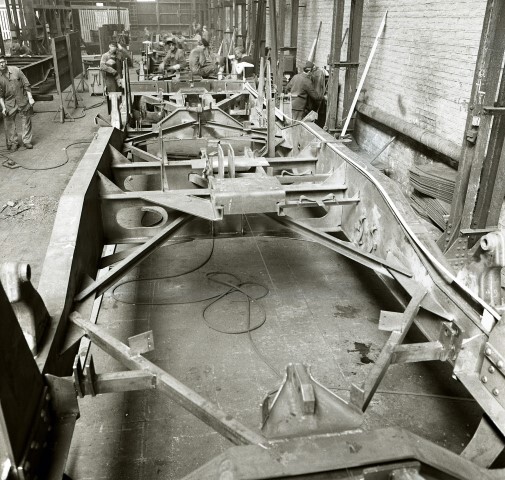 Deze fotogroep bevat negen negatieven. Ze tonen de aanbouwketting van platte wagens voor het vervoer van rollen plaatstaal (coils) in de fabriek te Familleureux. Deze vierassige wagens van het type 3614A2 zijn uitgerust met draaistellen.
