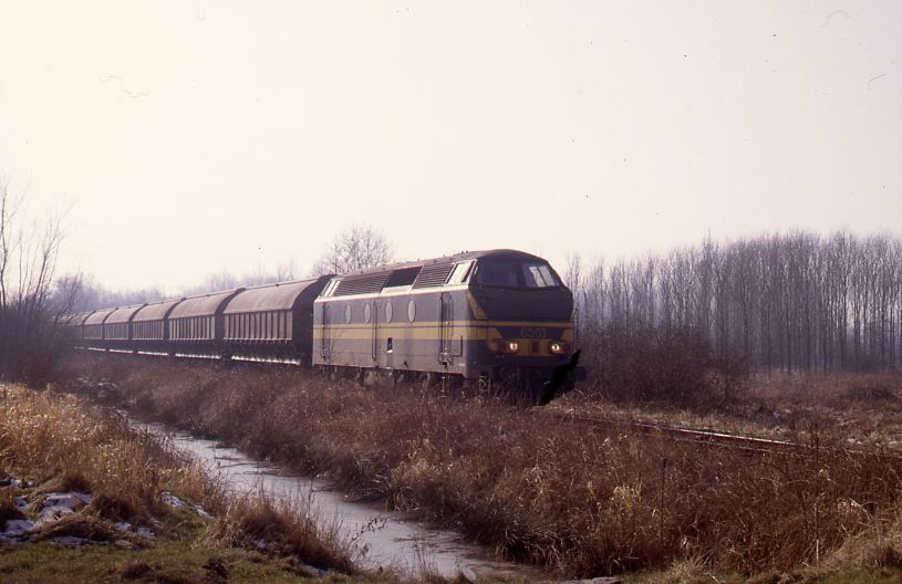 TitelDiesellocomotief 6503 met goederentrein in Lillo (Houthalen-Helchteren)
