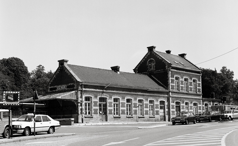 BeschrijvingDeze fotogroep bestaat uit drie negatieven. Ze tonen het station Terhulpen aan de straatzijde. Aan de zijgevel zien we een luifel en een stationsnaambord. Voor het station staan auto’s geparkeerd.