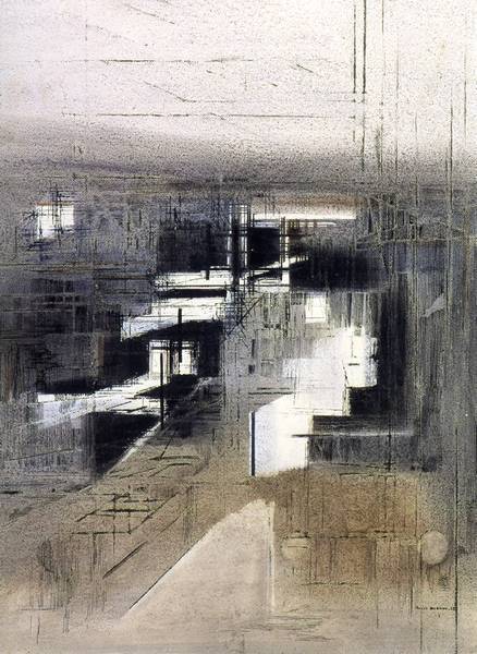 Non-figuratieve compositie van lijnen en vlakken in grijstinten