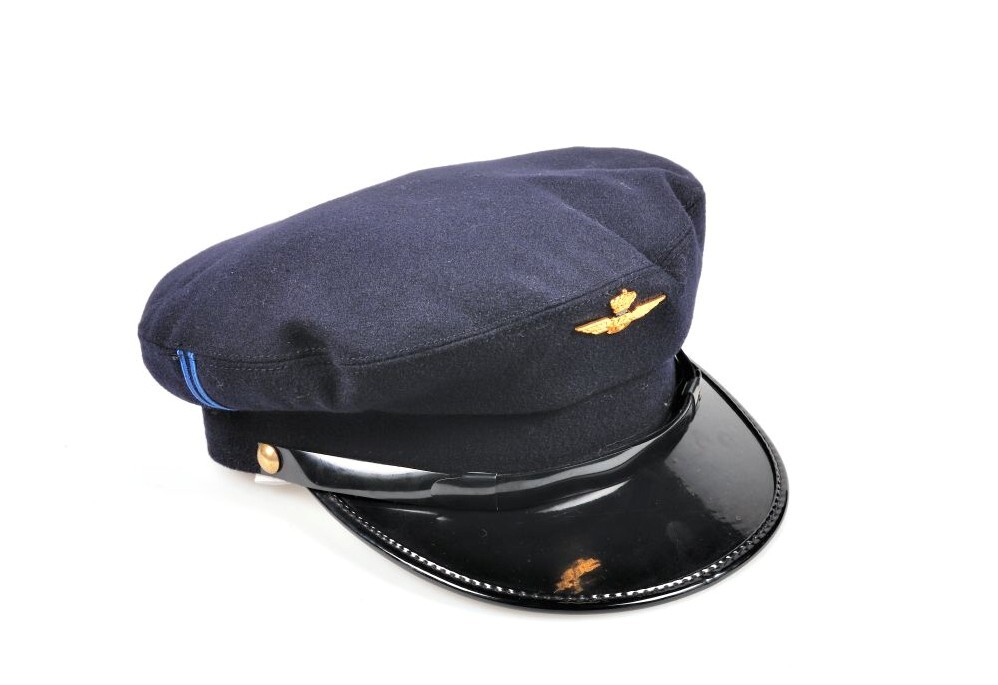 Donkerblauwe dienstpet met zwarte klep in kunststof. De stormband is van kunststof en vastgemaakt met twee metalen knopen. Er loopt een dubbele blauwe verticale streep aan beide zijden. Vooraan is een spoorweginsigne bevestigd. De pet is verstevigd met een leren band en de voering is beige of grijs. Ze werd in verschillende maten bewaard.