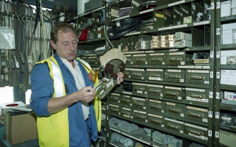 De fotogroep bevat 49 negatieven. Een technieker bestudeert aan zijn bureau het elektriciteitsschema van een motorstel. In het magazijn zoekt hij de nodige wisselstukken uit. Hij controleert en herstelt zo nodig de elektrische uitrusting van diverse motorrijtuigen. Het perron is met een luifel, stationsnaambord en spoornummers uitgerust.