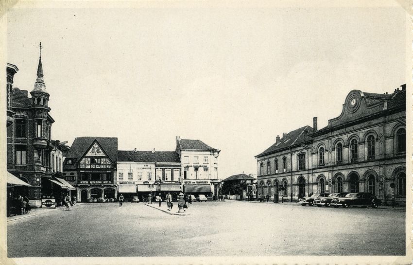TitelPostkaart van het stationsplein in Sint-Niklaas