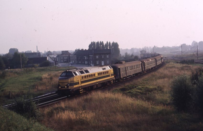 TitelDiesellocomotief 5124 met K-rijtuigen in de buurt van Oudenaarde